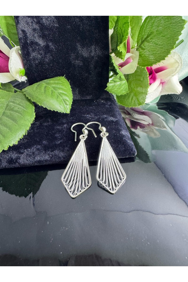Piramit desenli 925 ayar telkari gümüş küpe - KG20231748