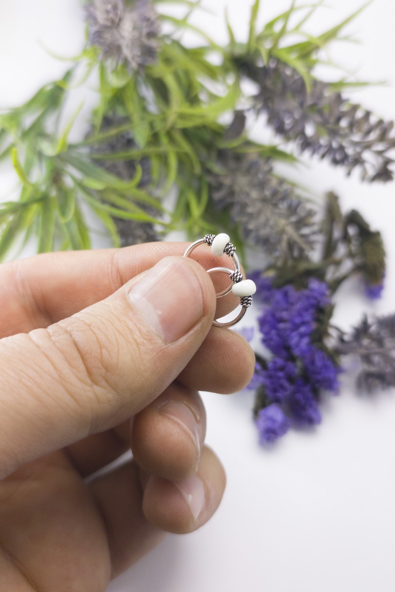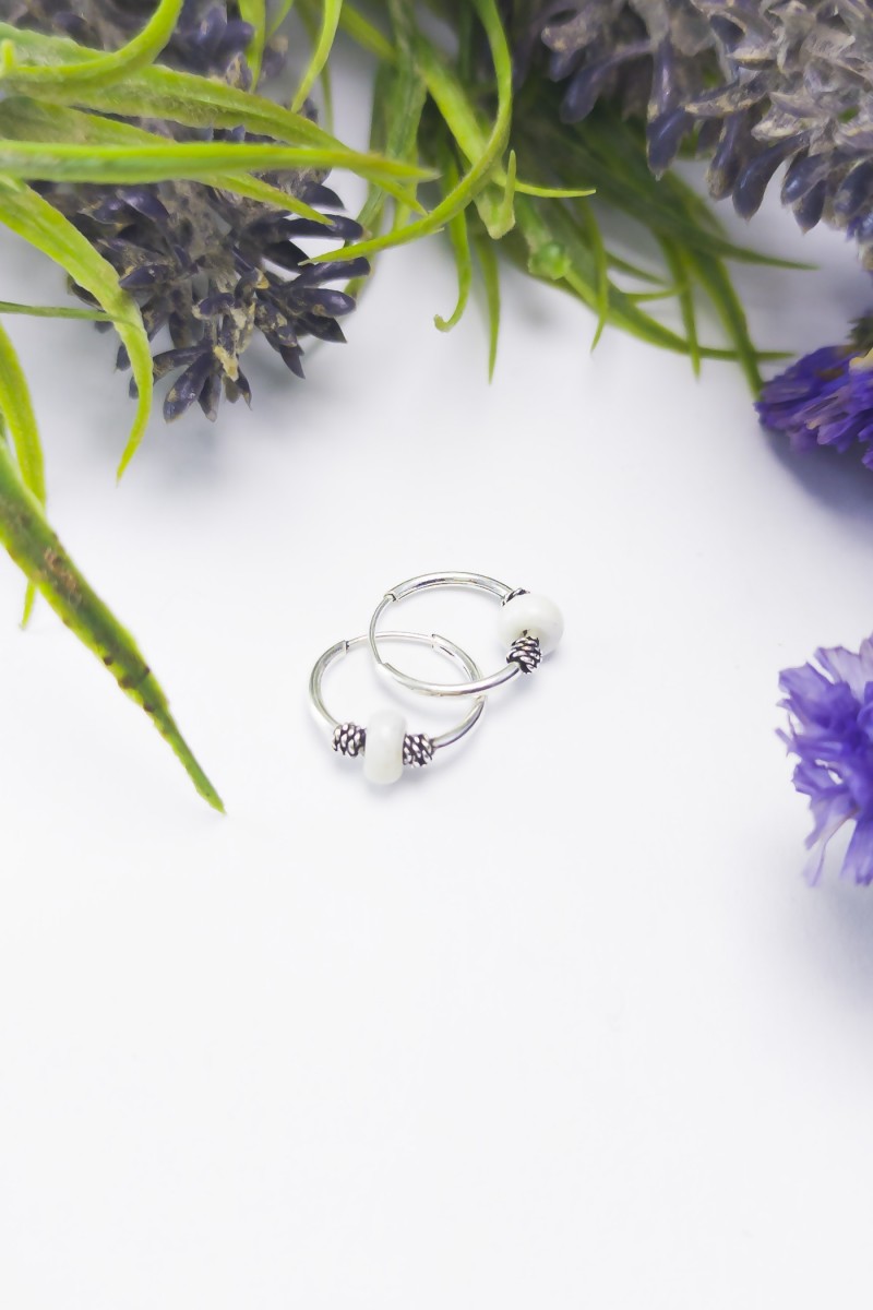 Beyaz Taşlı Gümüş Halka Küpe - KG20230308