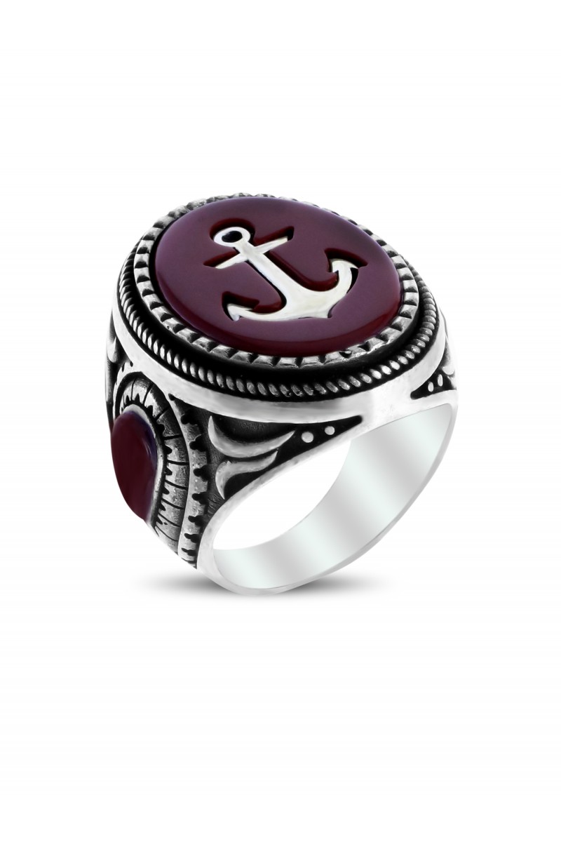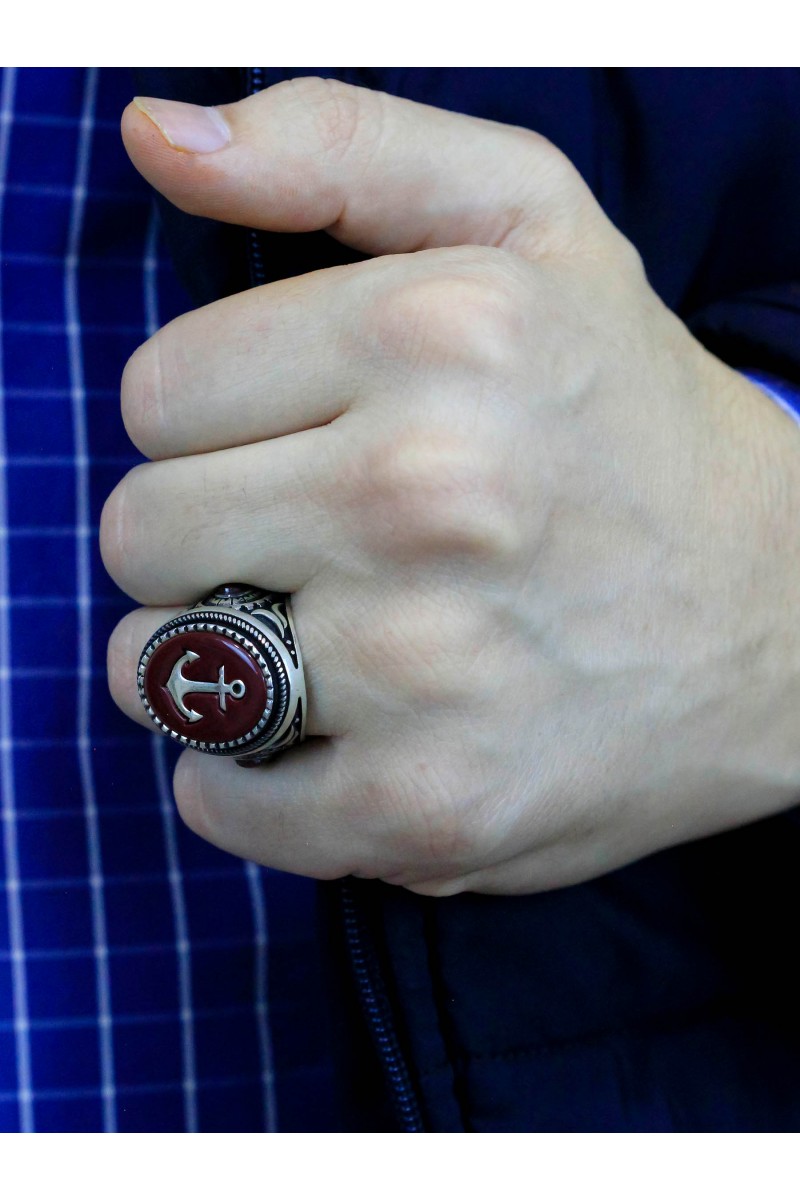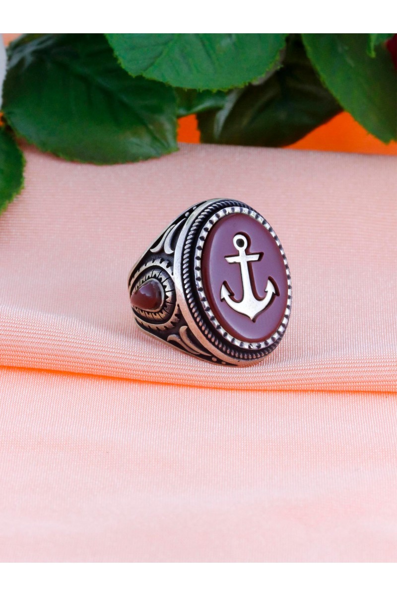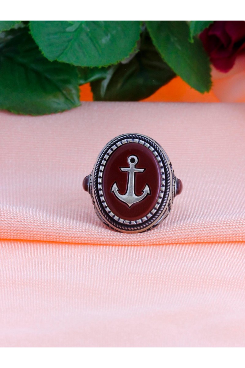 Denizci Çapası Akik Taşlı Erkek Gümüş Yüzük - KG20230899