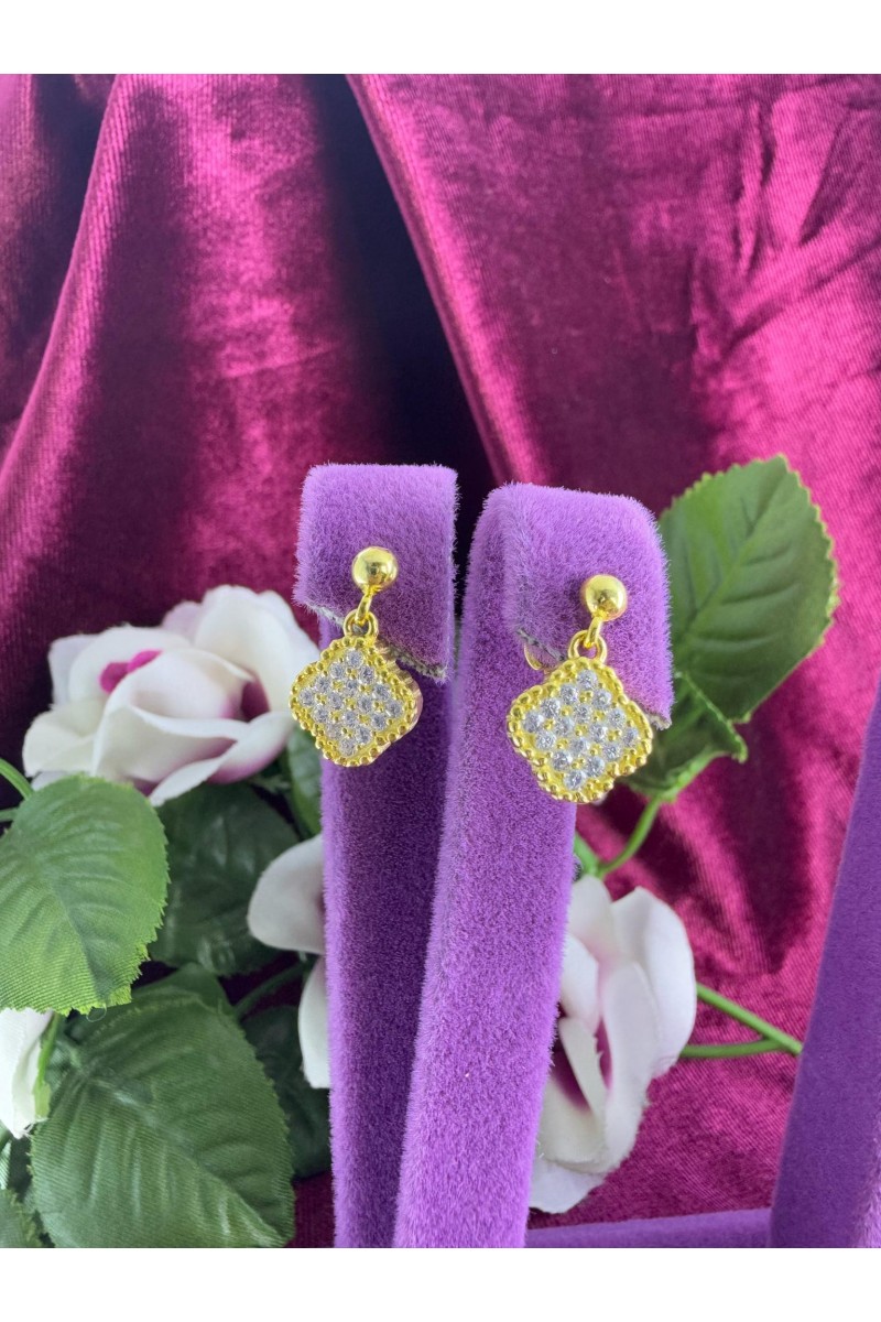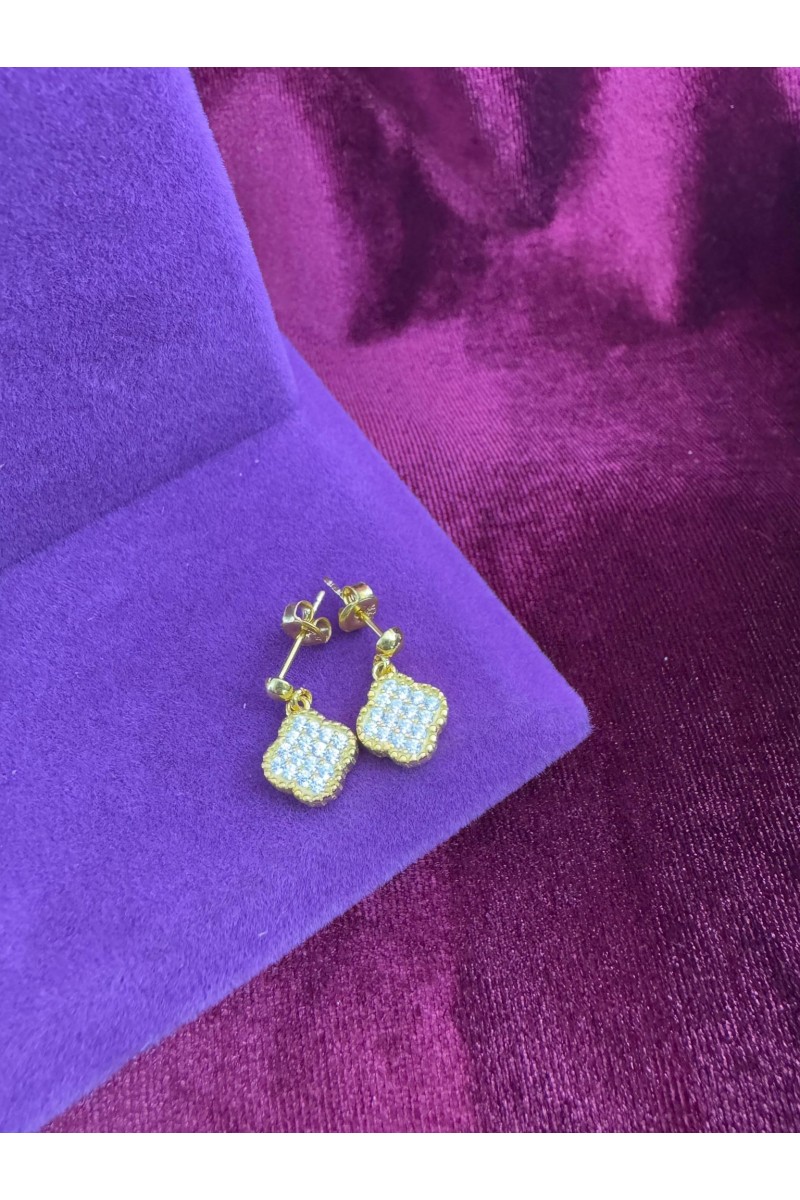 Yonca tasarım 925 ayar zirkon taşlı altın suyu kaplama gümüş küpe - KG20231779